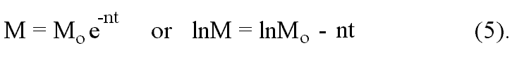Number of components in a meaning decreases exponentially in time. The greater cofficient n, the higher is tempo of a meaning’s abstractivisation. lnM is a measure of a meaning’s complexity.