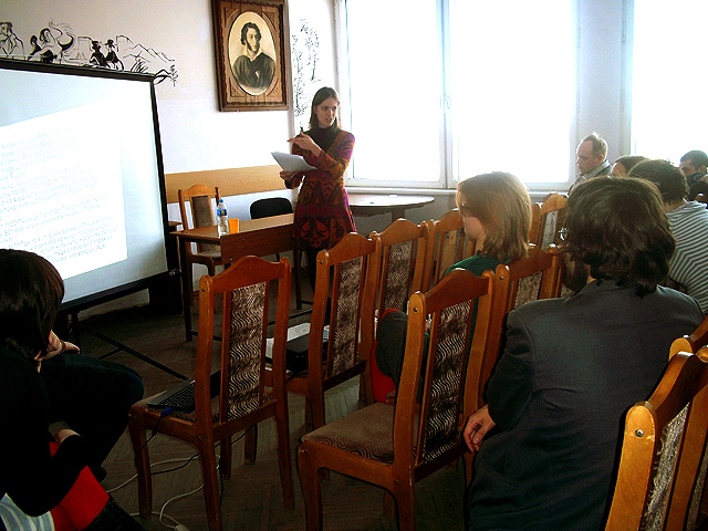 Все желающие могли прийти в Пушкинскую гостиную и послушать доклады исследователей: на выступление каждого участника выделялось около 20 минут.