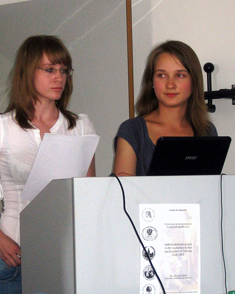 Немало вопросов было задано и немецким студентам, которые познакомили заинтересованных слушателей с проблематикой своих докладов. Множество различных точек зрения стало очередным подтверждением неохватности и многосторонности обсуждаемой темы, что не позволило подойти к окончательным выводам.